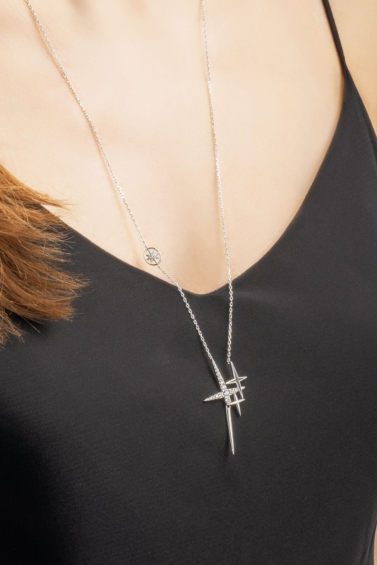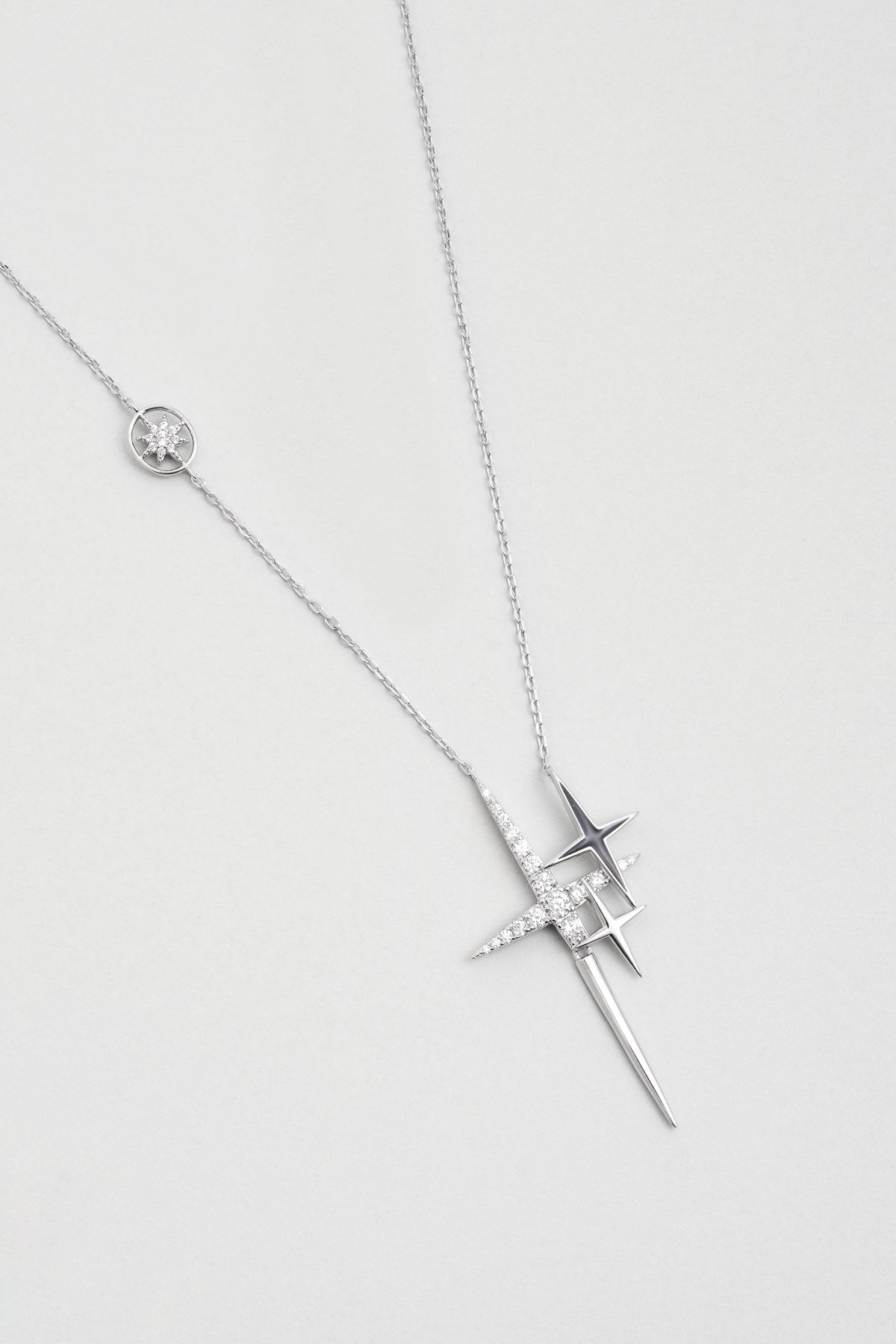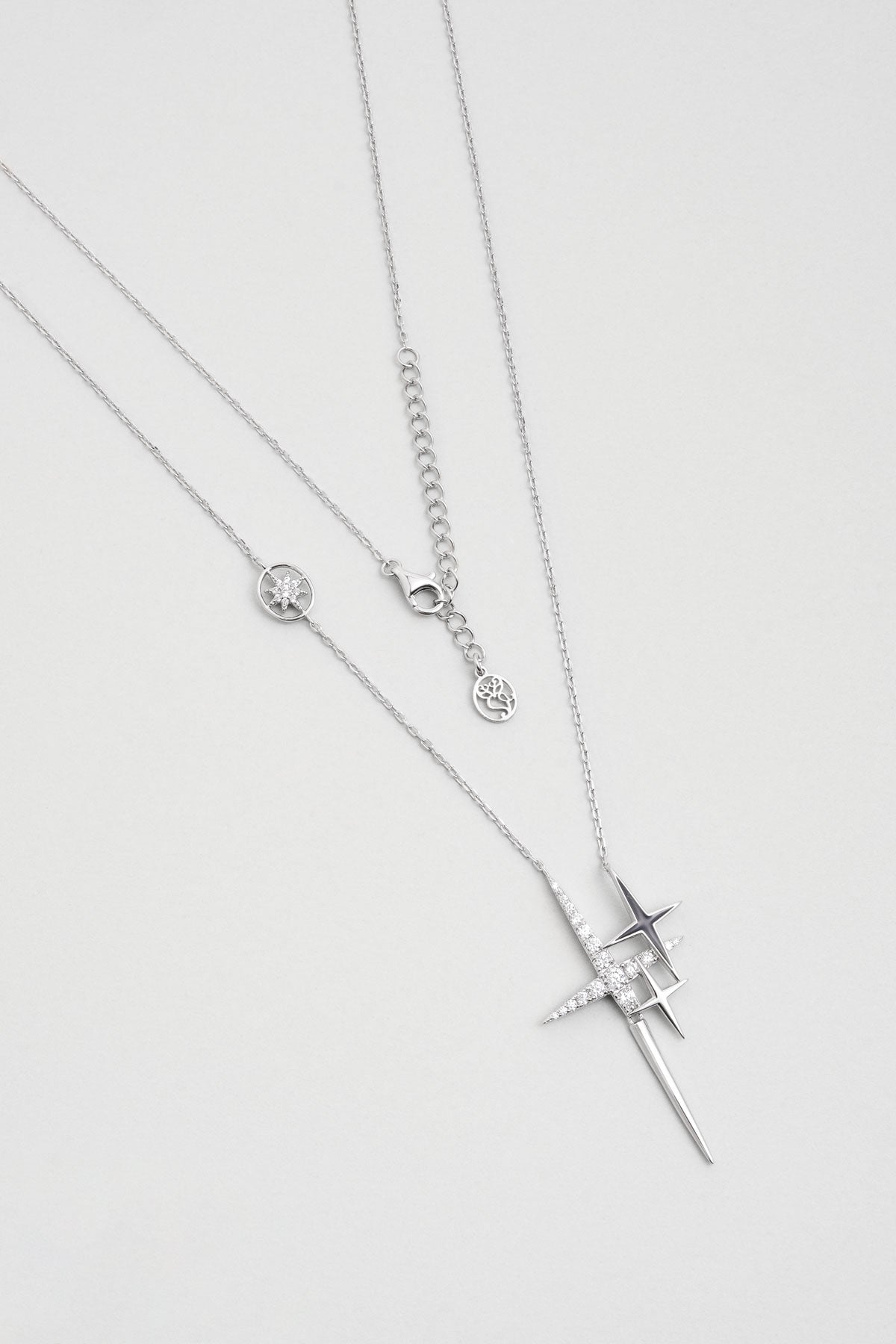 Yeniden Doğuş Yıldızı 18 Ayar Beyaz Altın Kaplama 70 Cm Gümüş Kolye 07304620199