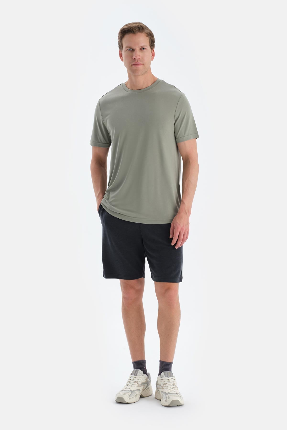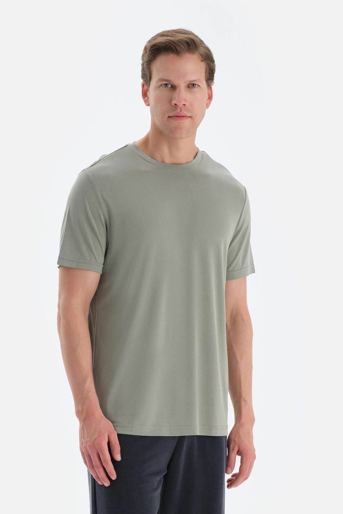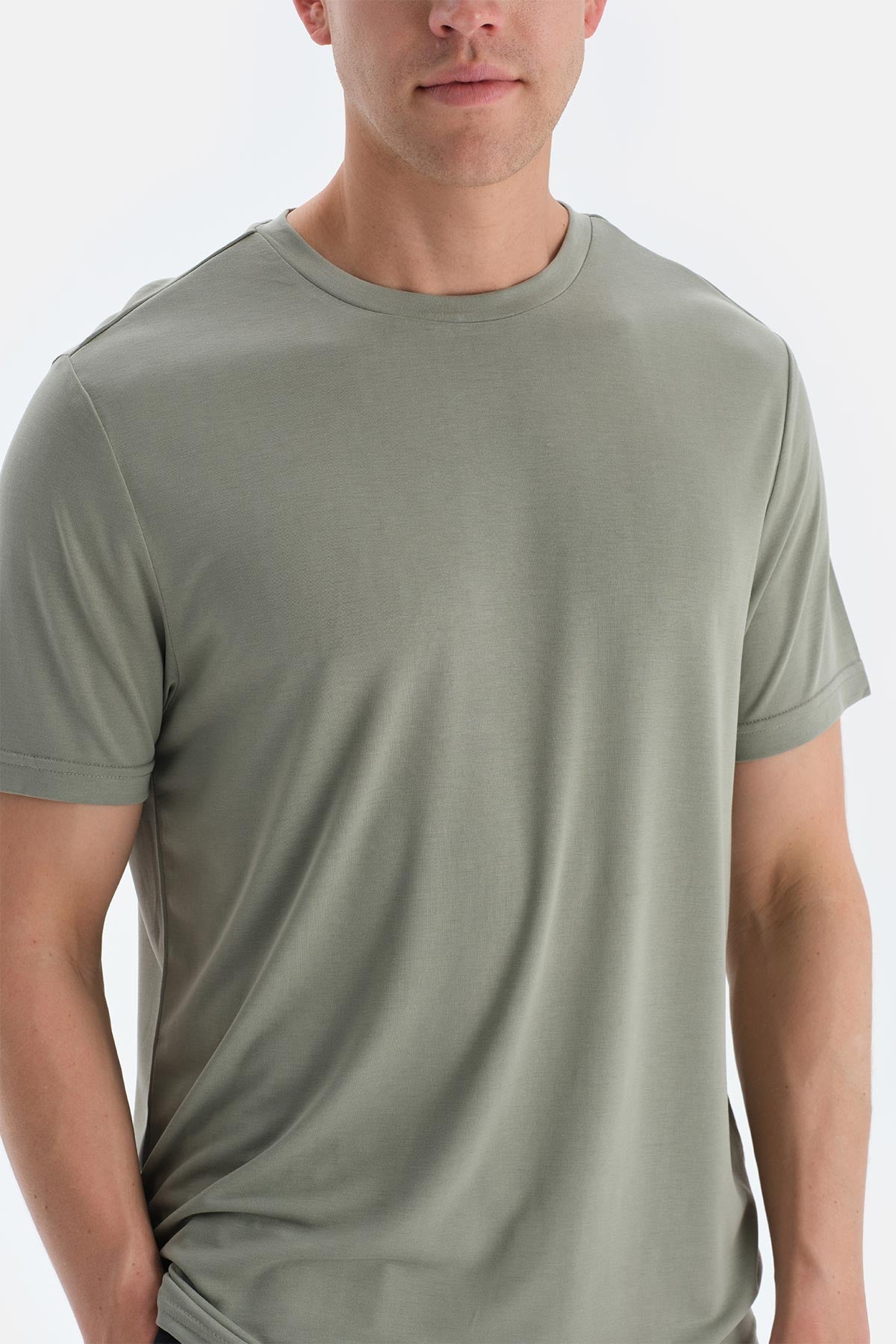 Yeşil Kısa Kollu Bisiklet Yaka Modal Tişört