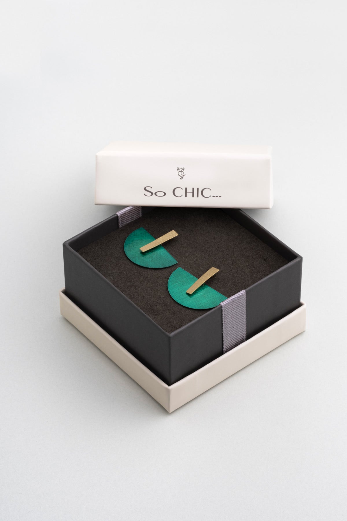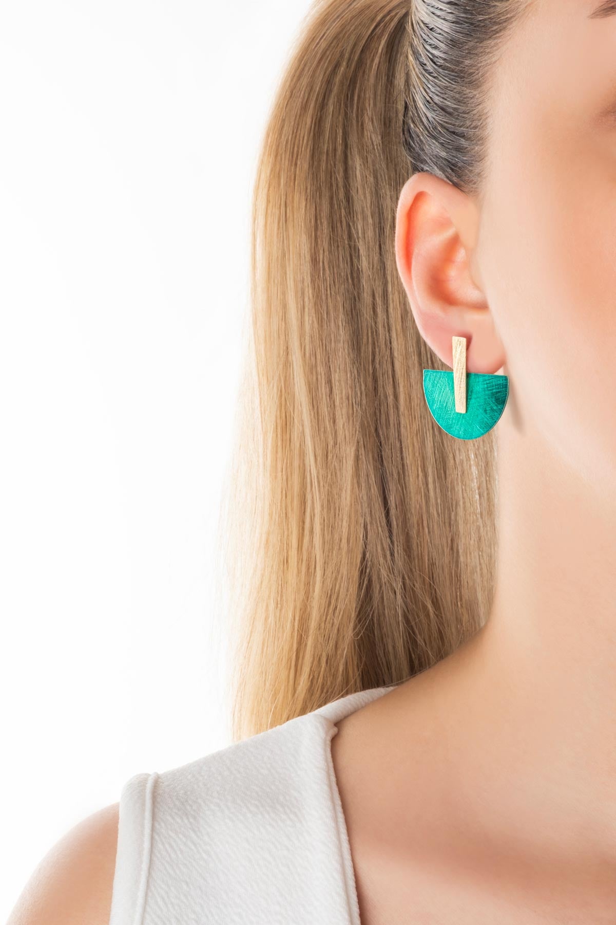 Yeşil Sahra 18 Ayar Sarı Altın Kaplama Gümüş Tasarım Küpe 07307740444