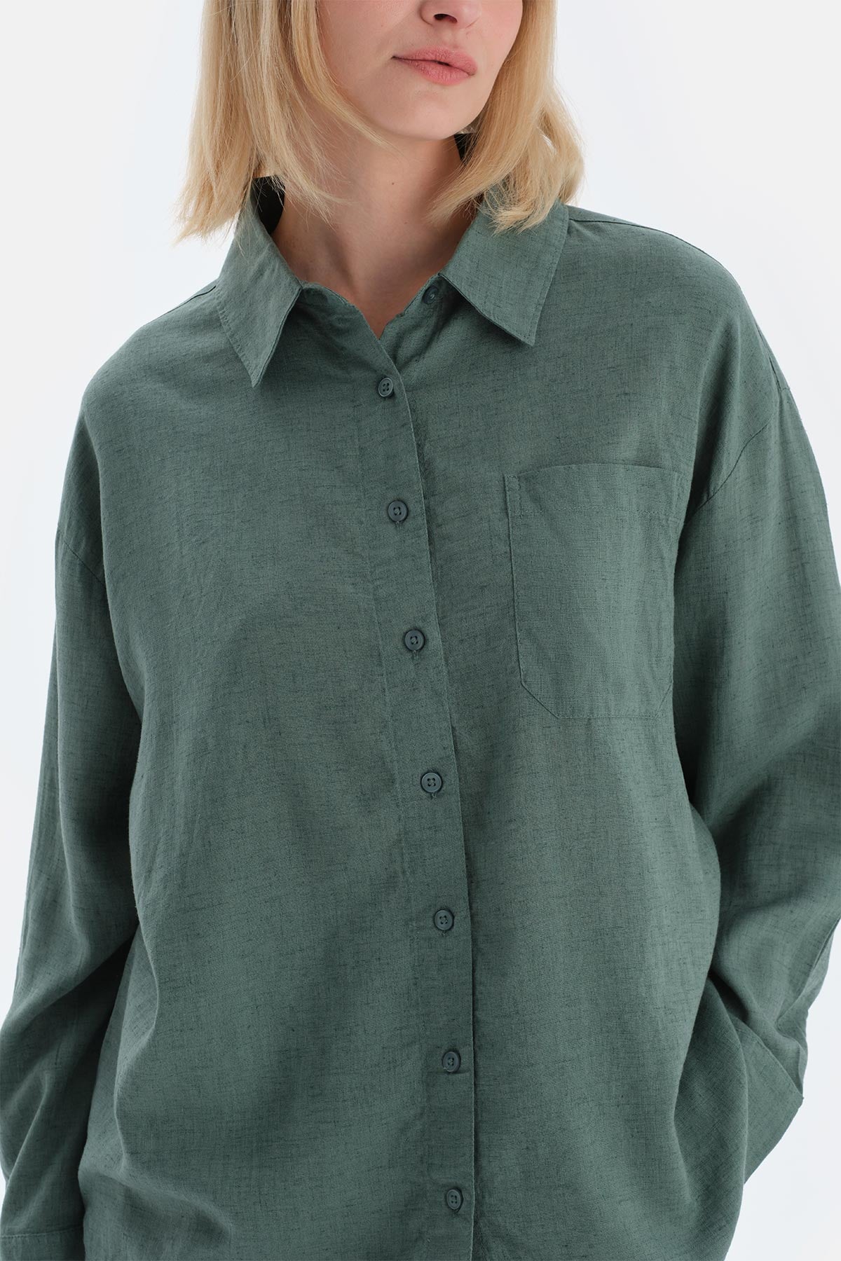 Yeşil Uzun Kollu Keten Dokuma Gömlek 25SW80020BB_379 şimdi Dagi'de. Kaliteli, konforlu ve özel fiyatlarla sizleri bekliyor.