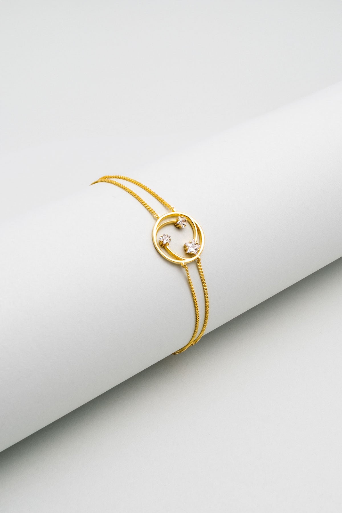 Yıldızlar Geçidi 18 Ayar Sarı Altın Kaplama 19 Cm Gümüş Bileklik 07312070144