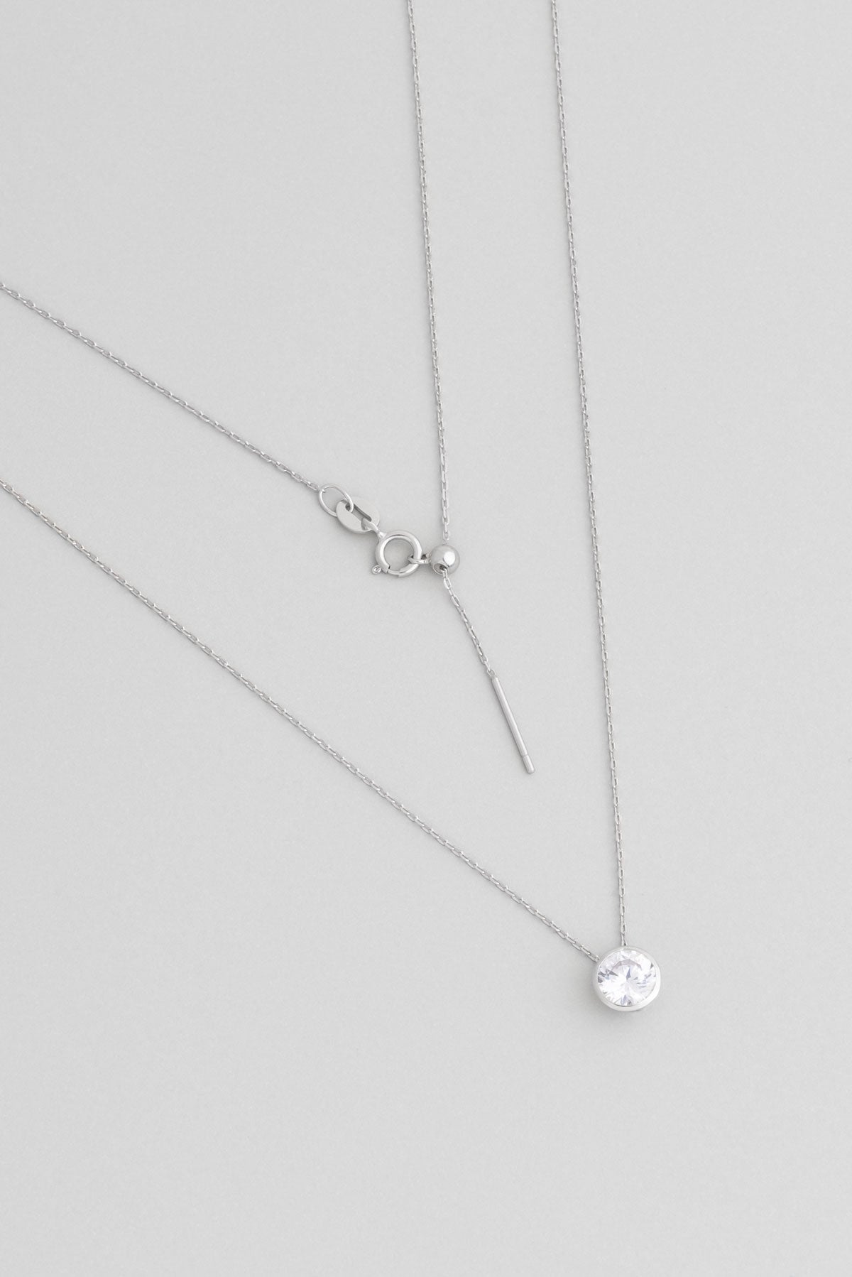 Yuvarlak Kesim 18 Ayar Beyaz Altın Kaplama 45 Cm Gümüş Tek Taş Kolye 5134340199