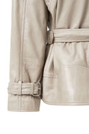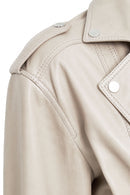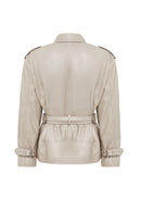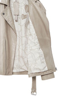 Zendaya Kadın Bej Kemer Detaylı Biker Deri Ceket